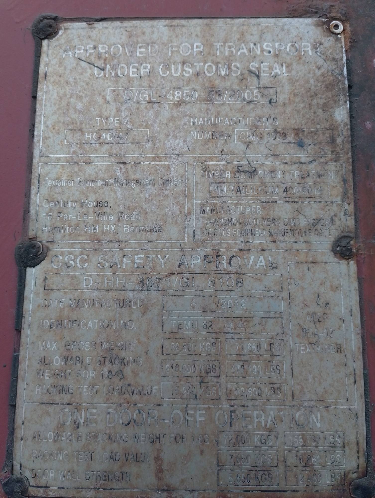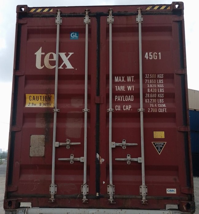 Б/У 40 футовый контейнер High Cube (HC). Контейнер без дефектов. Типоразмер 45G1, Грузоподъемность 32500 кг. Масса тары 3900 кг.