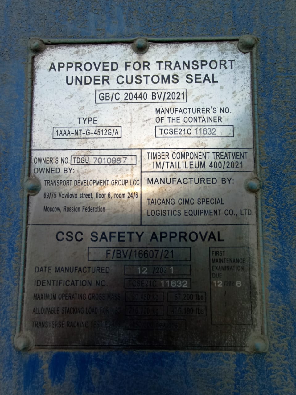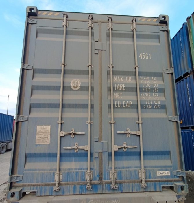 Б/У 40 футовый контейнер High Cube (HC). Контейнер без дефектов. Типоразмер 45G1, Грузоподъемность 32500 кг. Масса тары 3900 кг.