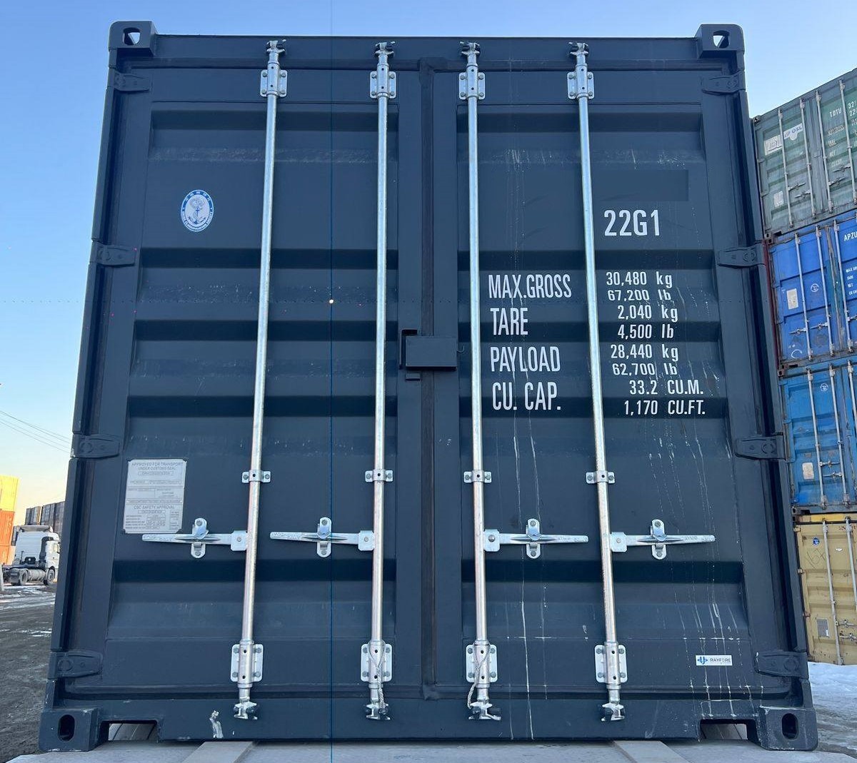 Новый 20 футовый контейнер DryCube (DC). Типоразмер 22G1, Грузоподъемность 30480 кг. Масса тары 2200 кг.
