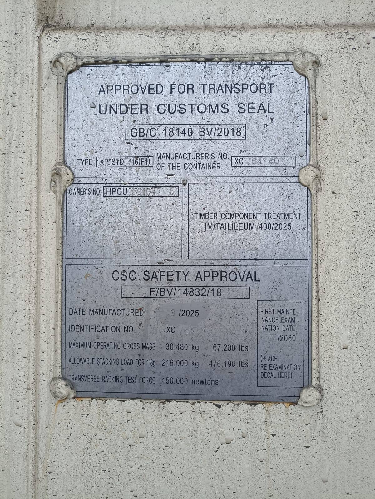 | Размер (футов) | 20 футов (Dry Cube) |